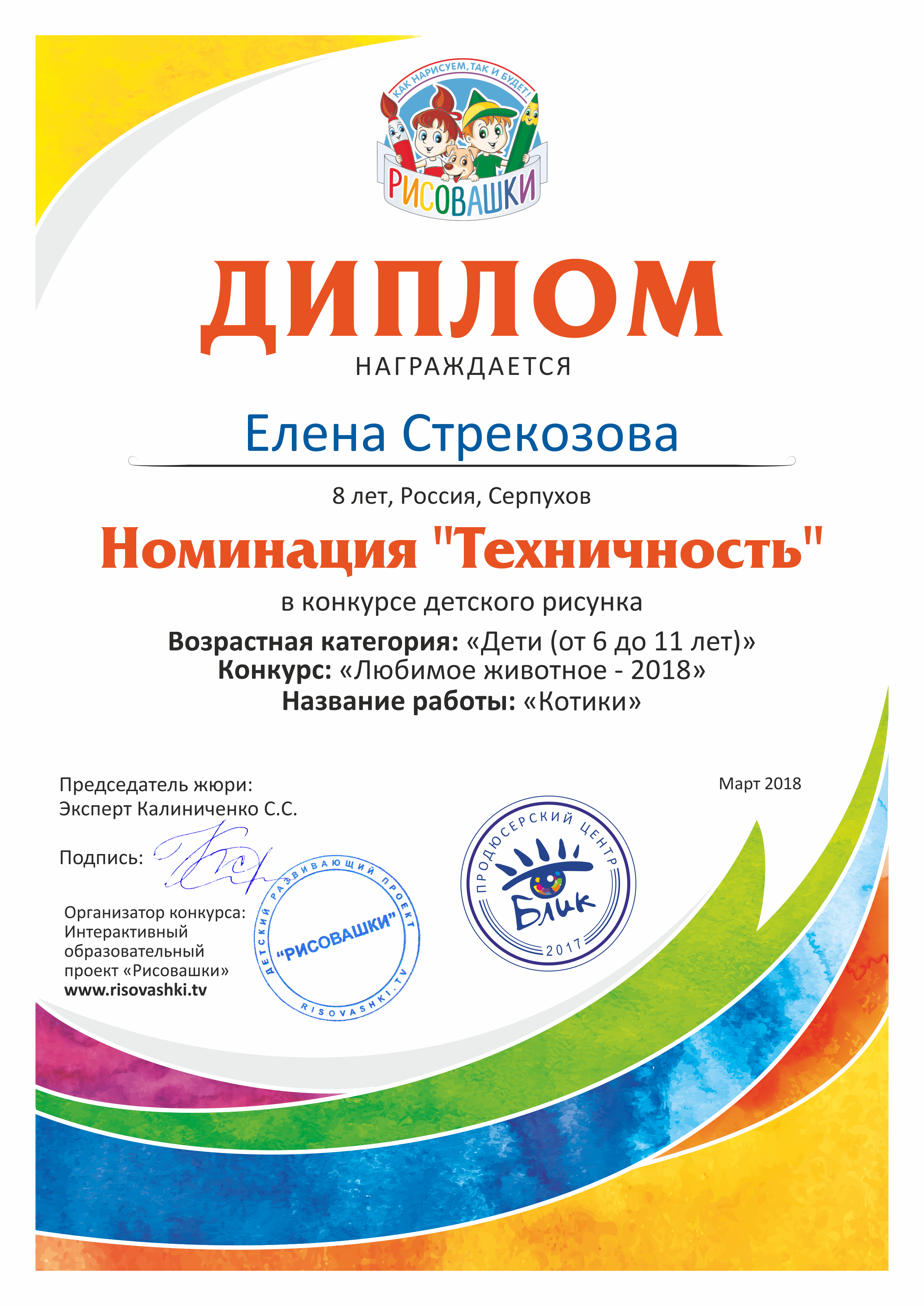Номинация "Техничность" в конкурсе "Конкурс детского рисунка "Любимое животное - 2018""